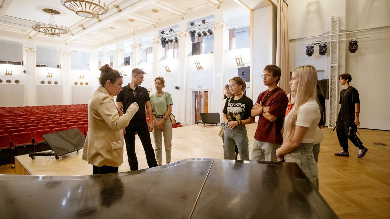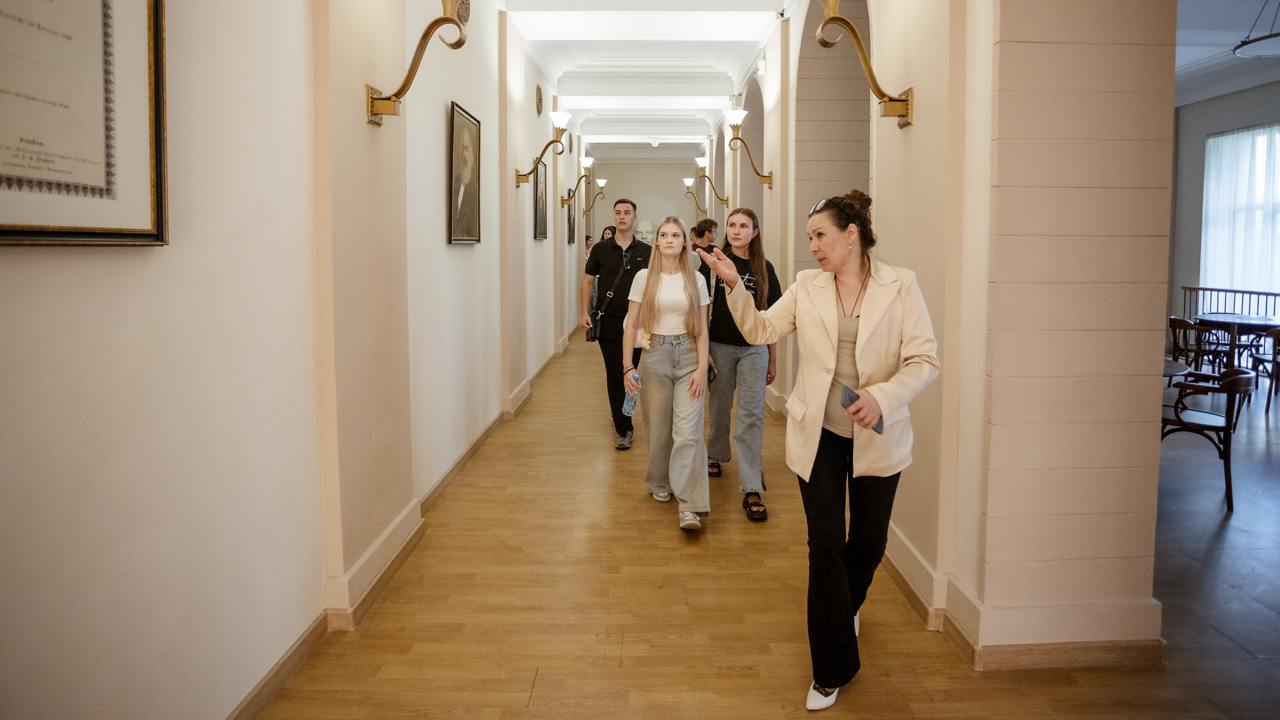 Гостей встретил Георгий Саркисов, проректор по молодежной политике и воспитательной работе РГСУ. Он пожелал им продуктивно отдохнуть в последние дни лета и увезти приятные воспоминания о нашем Университете и Москве. Ребята познакомились с инфраструктурой РГСУ. Они осмотрели учебную часть, прошлись по Технопарку, где увидели работу станков для 3D-печати, и узнали о цифровой моде и других проектах центра. Значительное внимание студенты уделили осмотру Музея Коминтерна и его эксклюзивных коллекций — предметов быта членов Коминтерна, агитационных материалов и других экспонатов, связанных с работой государственных органов.