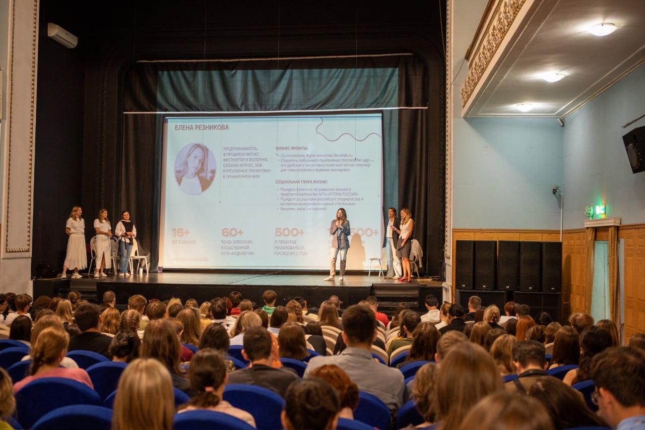 9 сентября участники Комитета по развитию женского предпринимательства «Опора России» провели первые в этом году лекции на тему «Пять принципов успеха предпринимателя» для студентов первого курса РГСУ. Лекции прошли в формате живого общения, авторы курса представили личные кейсы, а в конце провели опрос на тему карьеры и ключевых семейных ценностей.