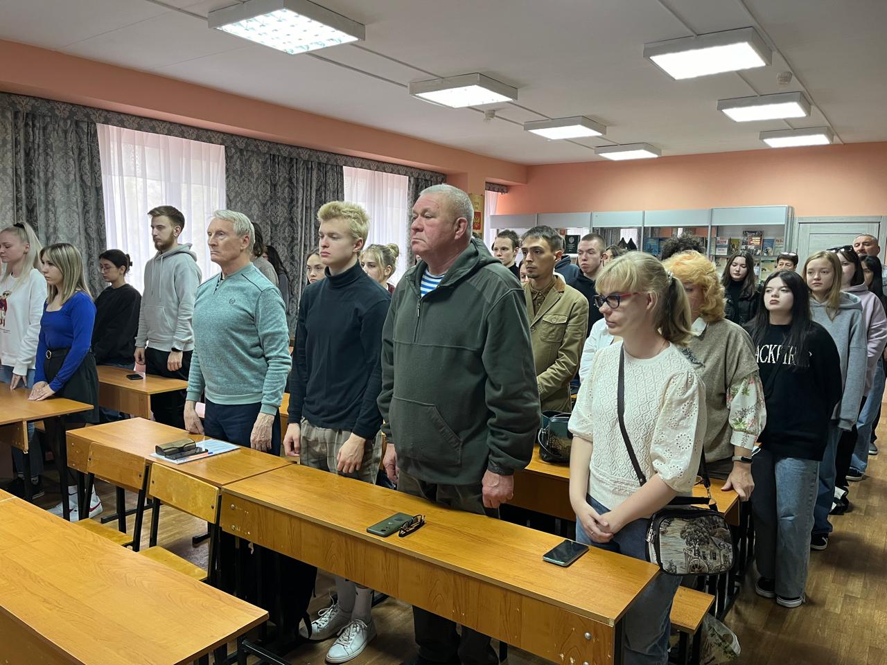 Минутой молчания почтили память учителей, педагогов, которые в Великую Отечественную спасали детей от зверств фашистов и нацистов, и тех, что спасают в наше время, закрывая собой учеников в Беслане, пряча их от террористов, жертвуя собой во время военных действий, стихийных бедствий и чрезвычайных ситуаций и во всех случаях, когда ребенок смотрит на взрослого с мольбой о защите.