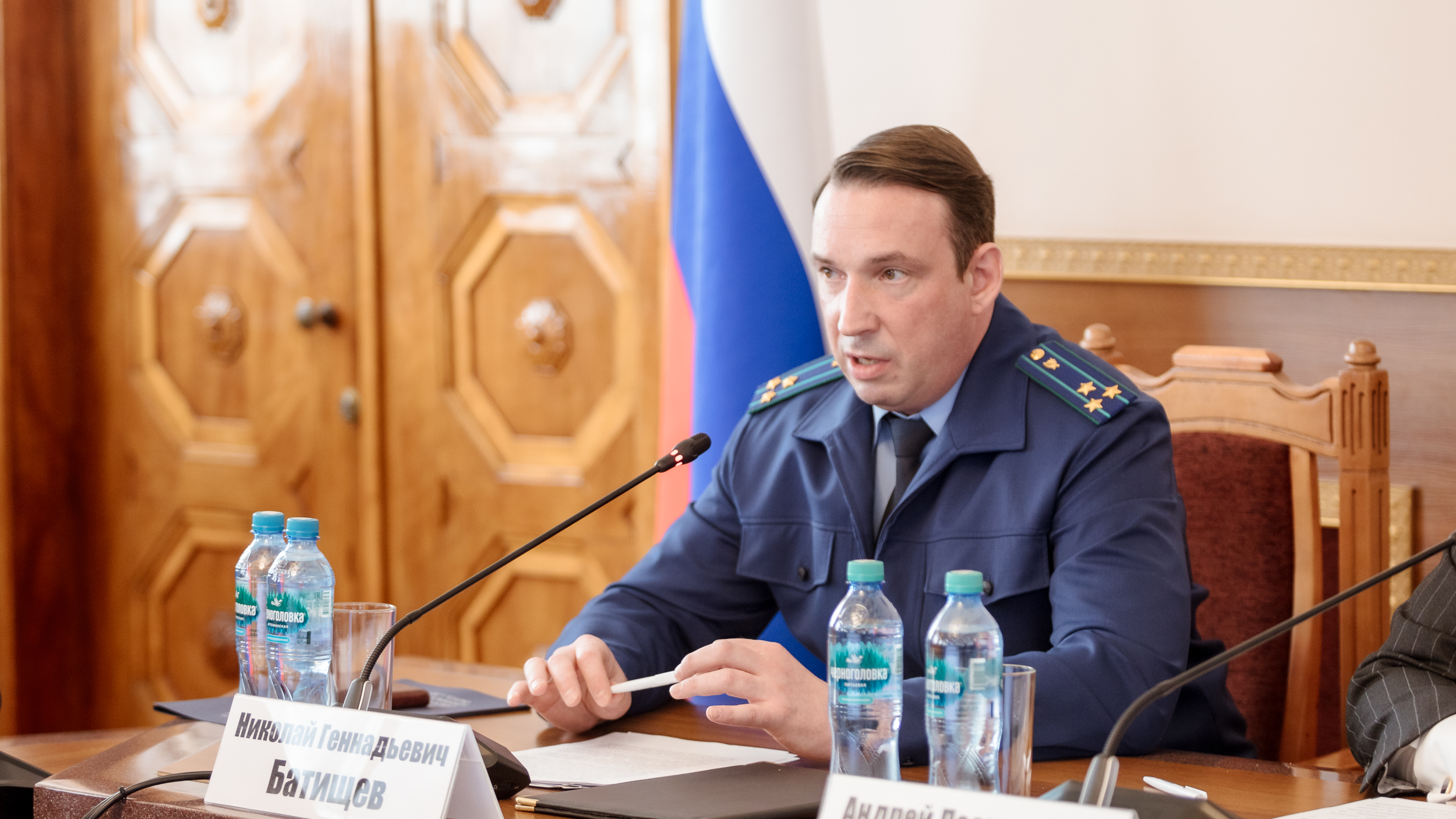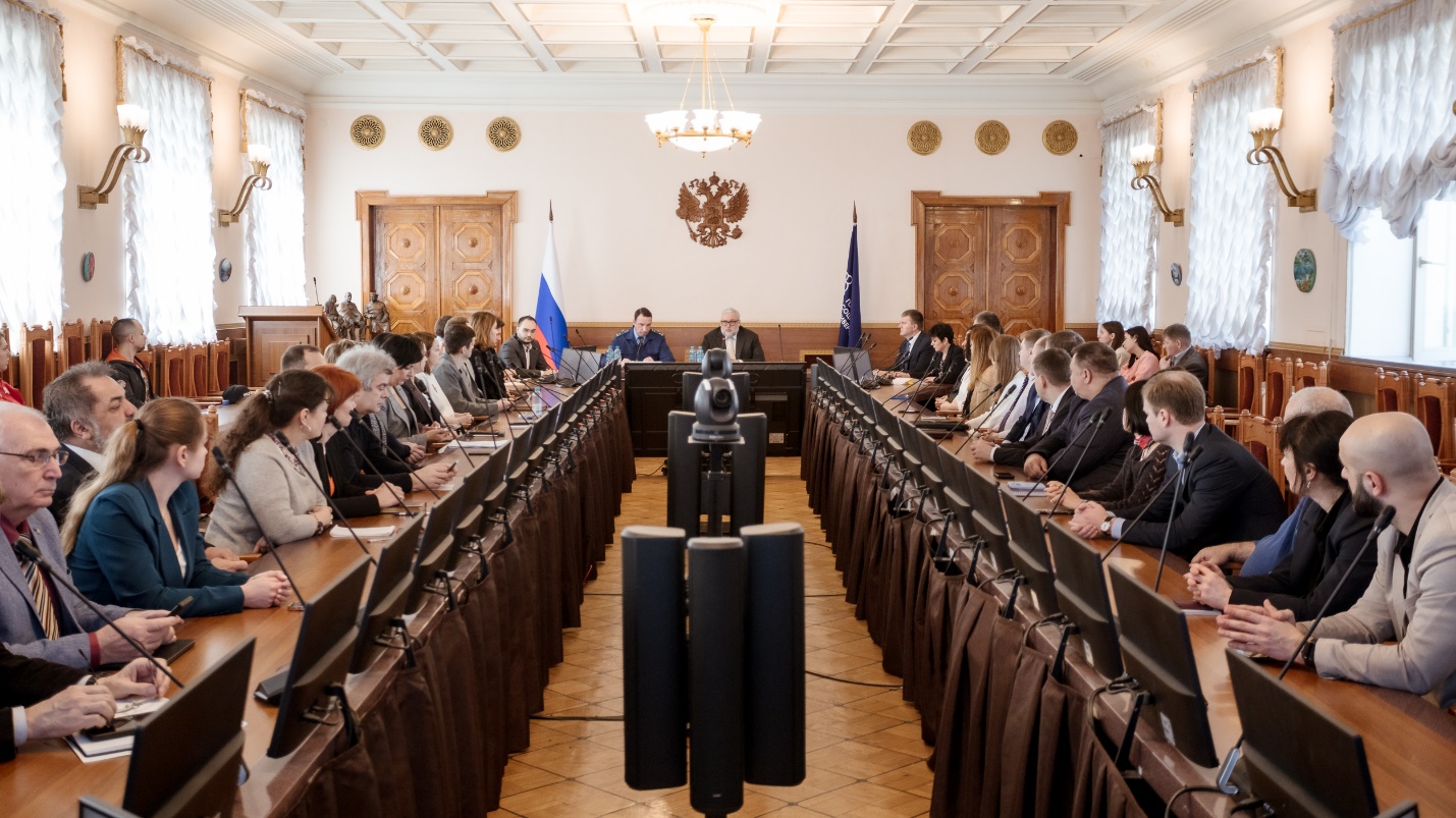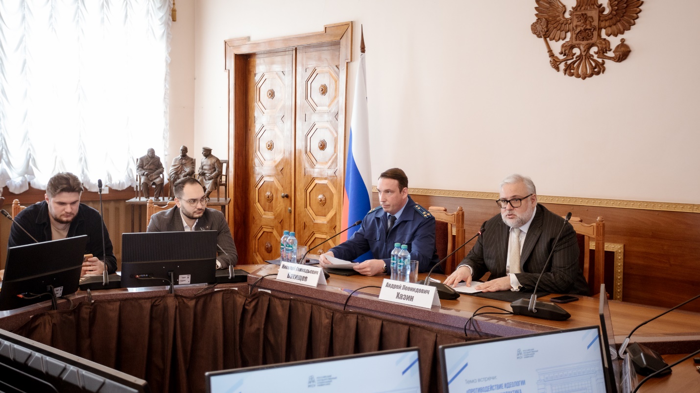 Заседание по теме противодействия идеологии терроризма, профилактики экстремизма и коррупционных проявлений в образовательных организациях прошло в зале Ученого совета Первого Социального под председательством ректора РГСУ, академика РАХ Андрея Леонидовича Хазина. Основным докладчиком выступил прокурор Северо-Восточного административного округа города Москвы Николай Геннадьевич Батищев.